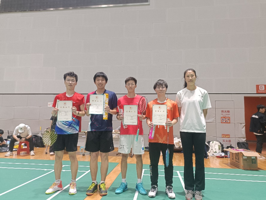 孙老师为男子单打选手们颁奖