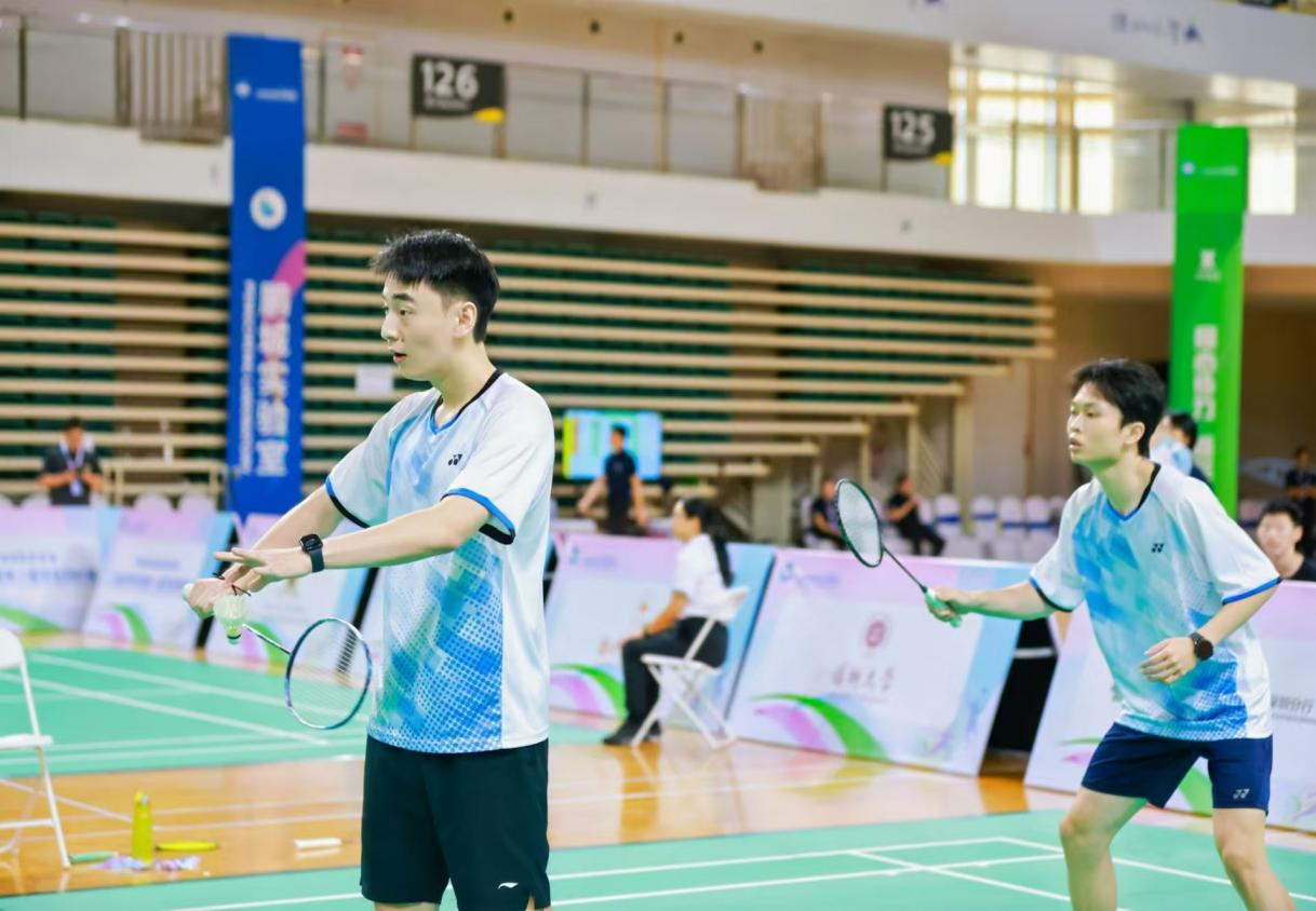 南方科技大学学生正在进行男双决赛争夺战