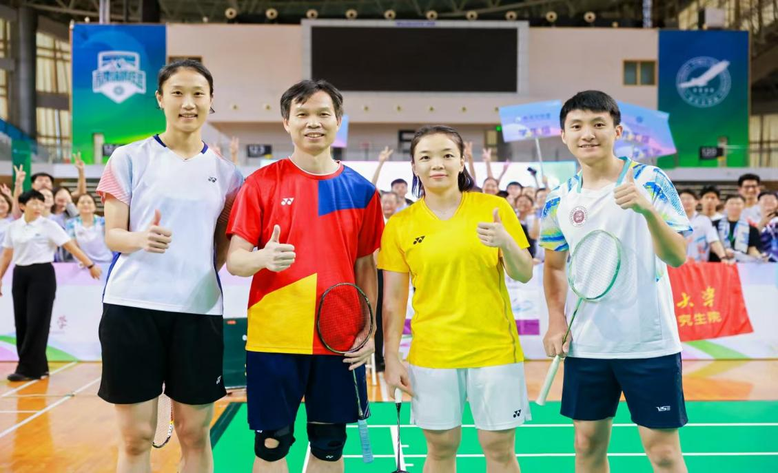 本次赛事中邀请到巴黎奥运会女双冠军陈清晨在X9高校赛事中与大家互动、交流以及颁奖,通过传递奥运精神以及个人成功的夺冠经历分享给高校的师生,让本次活动气氛高涨,师生们激动欢呼。在分享后,并在表演赛中陈清晨与我校孙瑜老师、曾煜民老师进行羽毛球表演赛,让在场的师生与观众感受到本次活动的羽球盛宴