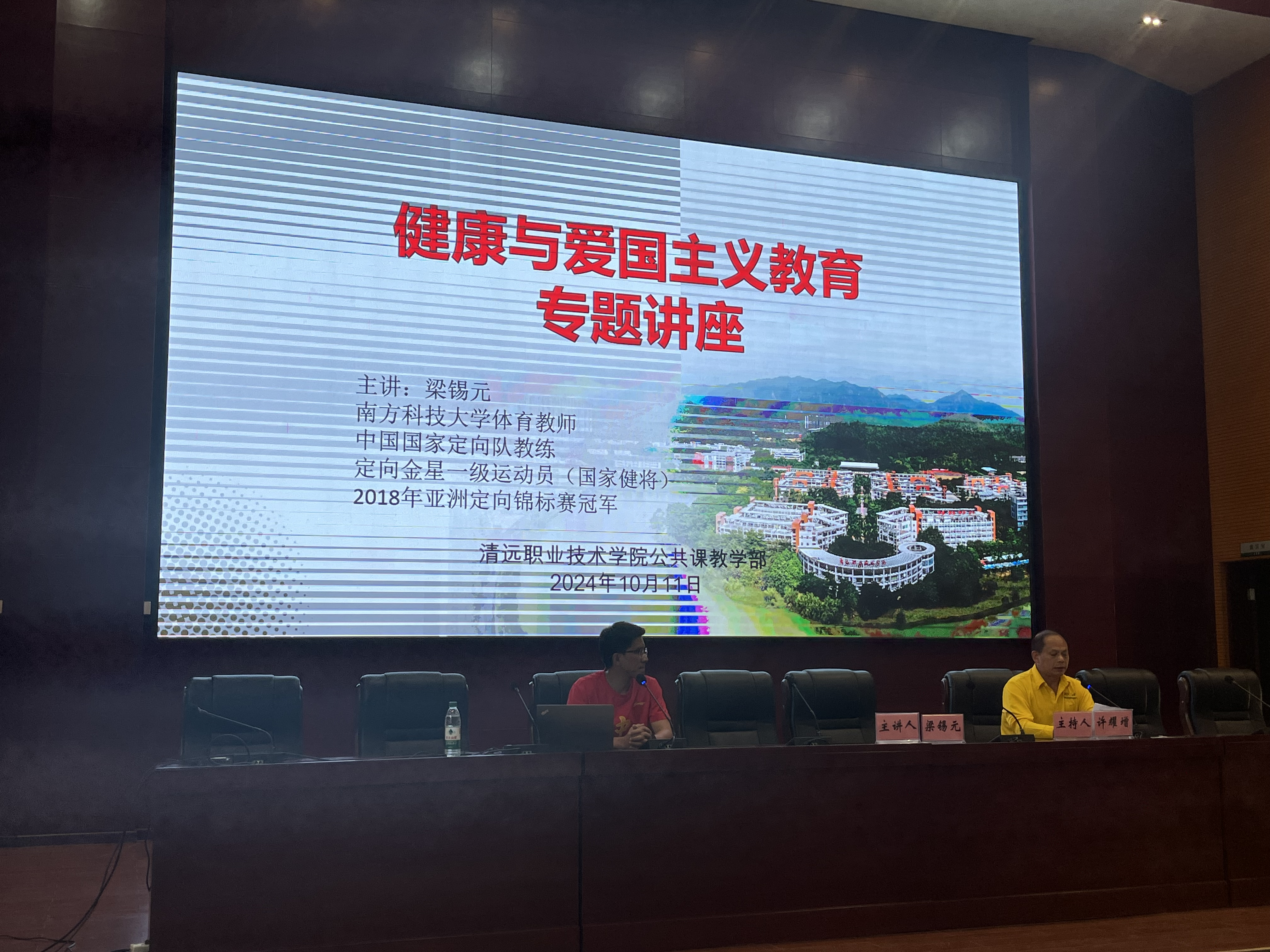 为落实习近平总书记“健康第一”的教育理念和“五育并举”的重要指示精神,10月24日下午,我校教师梁锡元受清远职业技术学院公共课教学部邀请,走进清职院,开展以健康与爱国主义教育为主题的专题讲座。本次活动由清职院公共课教学部主任许耀增主持,400多名师生参加本次专题讲座活动。