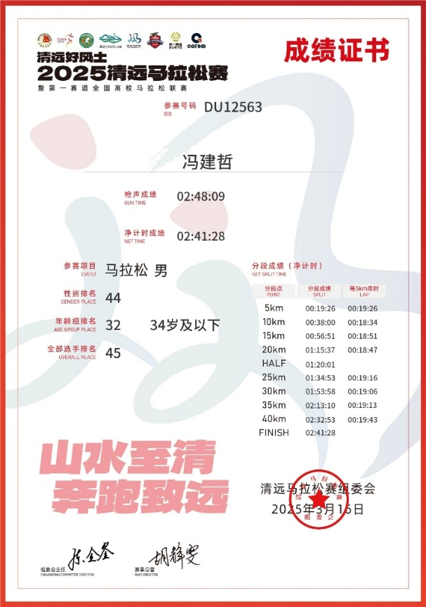 值得庆贺的是,南科健儿在本届赛事中实现多项突破:田径队中长跑组队员冯建哲首次出战马拉松告捷,以2:41:28的成绩大幅度刷新校纪录,位列7000名参赛选手中第45名。