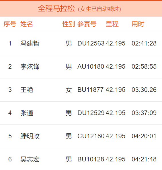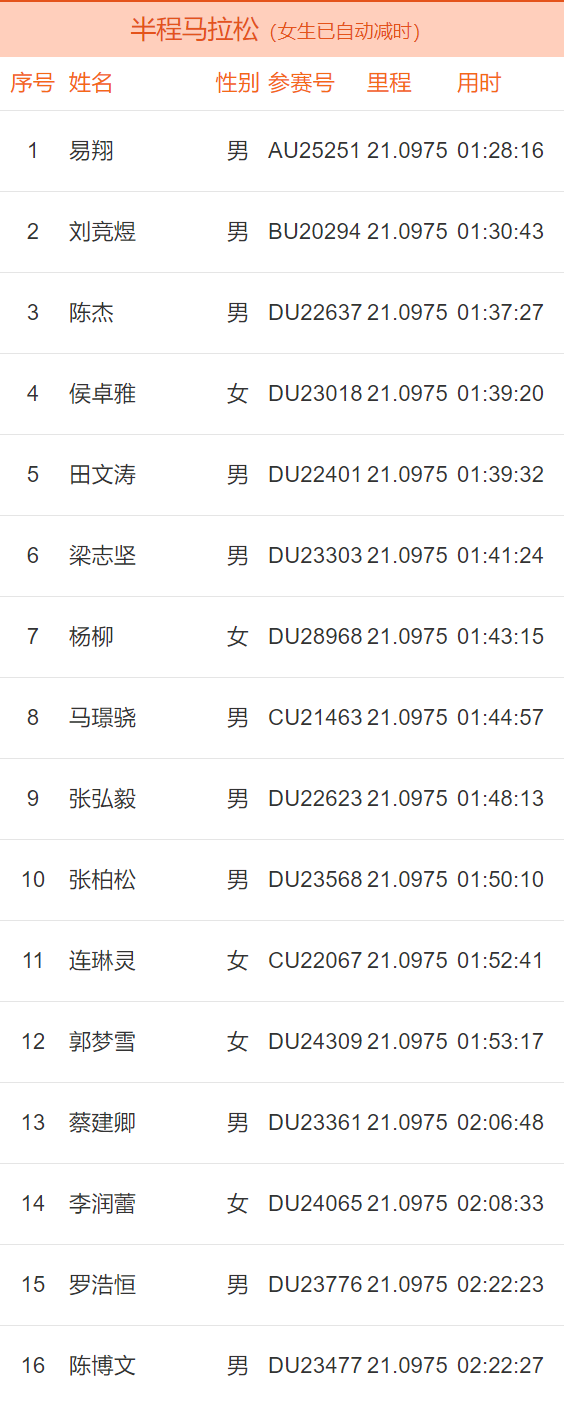 (说明:女生已自动减时,实际净成绩以组委会最终公示为准)
