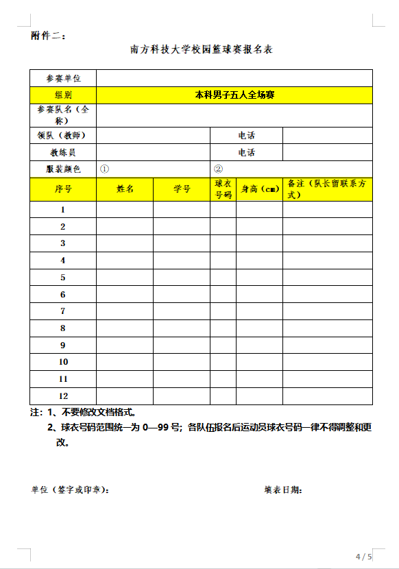 (三)为便于赛事管理,运动员球衣号码在各参赛队提交电子版报名表后,一律不能调整、更改。