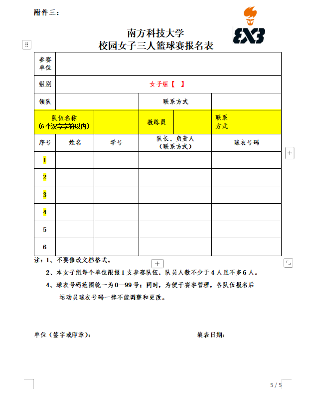 报名表及邮件名称格式:书院+男子/女子+5/3人报名表