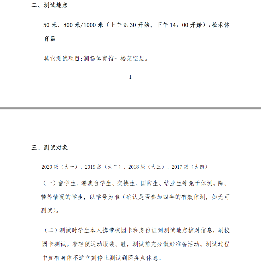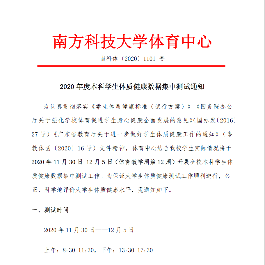 2020年度本科学生体质健康数据集中测试通知
